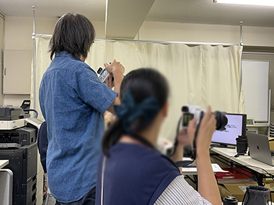 座学の後、屋外でのカメラを使っての撮影実習になります。