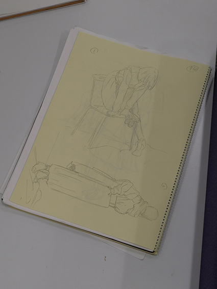 参加者同士途中での画材の情報交換など和気あいあいと雑談をしている姿が見れた。今回もアニメーターを目指している大学生が、終了後にポートフォリオの相談があり居残って色々とアドバイス。