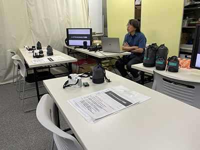 屋外で実習する前に、座学でカメラの基礎講座が一時間ほど行います。