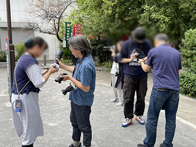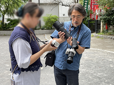 座学の後、屋外でのカメラを使っての撮影実習になります。